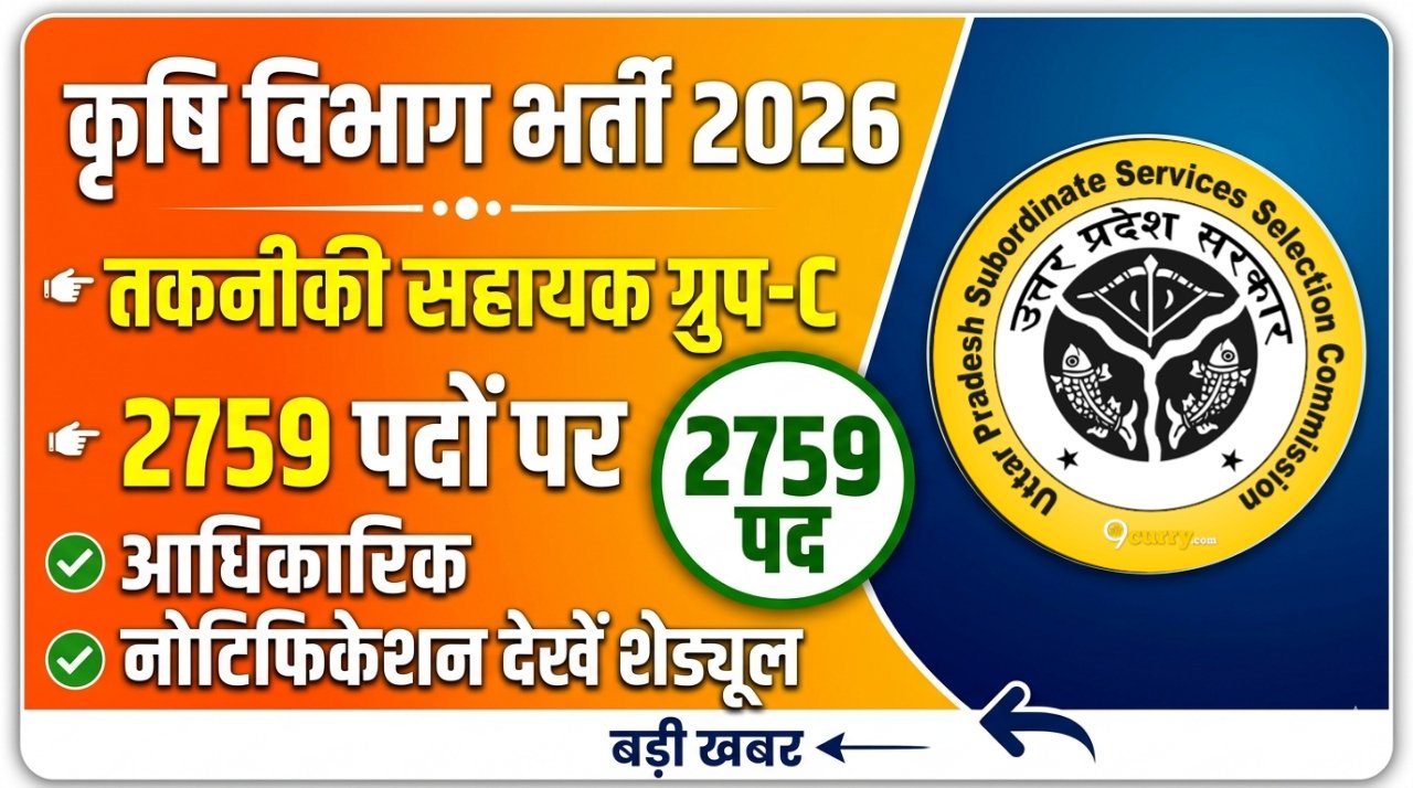 कृषि तकनीकी सहायक ग्रुप-C के 2759 पदों पर नोटिफिकेशन देखें शेड्यूल UPSSSC Agriculture Technical Assistant Group-C Recruitment 2026