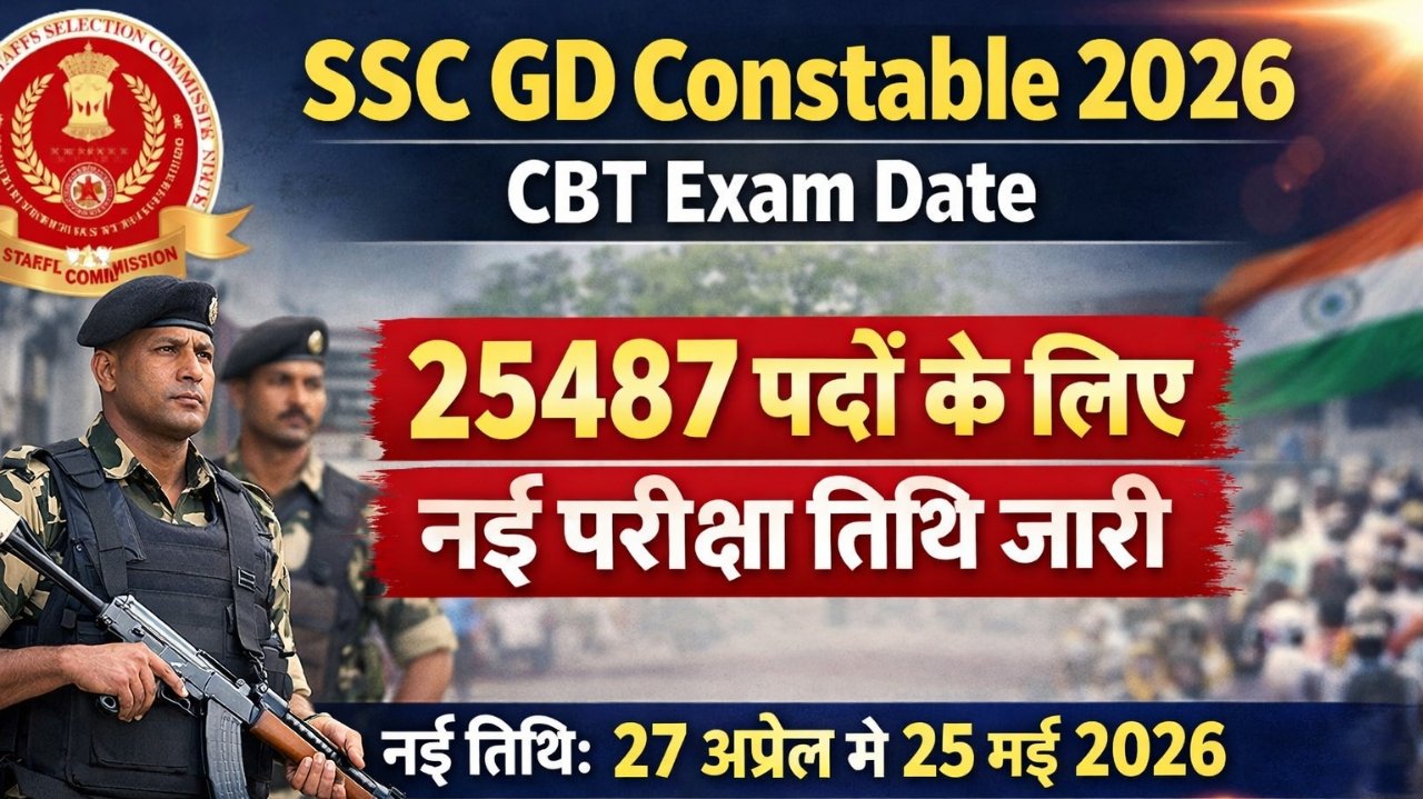 SSC GD Constable 2026 CBT Exam Date OUT: SSC GD Constable 2026 को लेकर उम्मीदवारों के लिए बड़ा अपडेट सामने आया है। स्टाफ सिलेक्शन कमीशन (SSC) ने CAPFs, SSF और Assam Rifles में GD Constable भर्ती 2026 के लिए परीक्षा तिथि में बदलाव कर दिया है। पहले यह परीक्षा 23 फरवरी 2026 से शुरू होने वाली थी, लेकिन इसे स्थगित कर दिया गया था। अब आयोग ने नई परीक्षा तिथियां जारी कर दी हैं, जिसके अनुसार CBT परीक्षा 27 अप्रैल 2026 से 25 मई 2026 तक आयोजित की जाएगी। यह भर्ती उन युवाओं के लिए एक बड़ा अवसर है जो केंद्रीय सशस्त्र पुलिस बलों में नौकरी करना चाहते हैं। इस भर्ती के माध्यम से कुल 25,487 पदों को भरा जाएगा, जिसके लिए लाखों उम्मीदवारों ने आवेदन किया है।