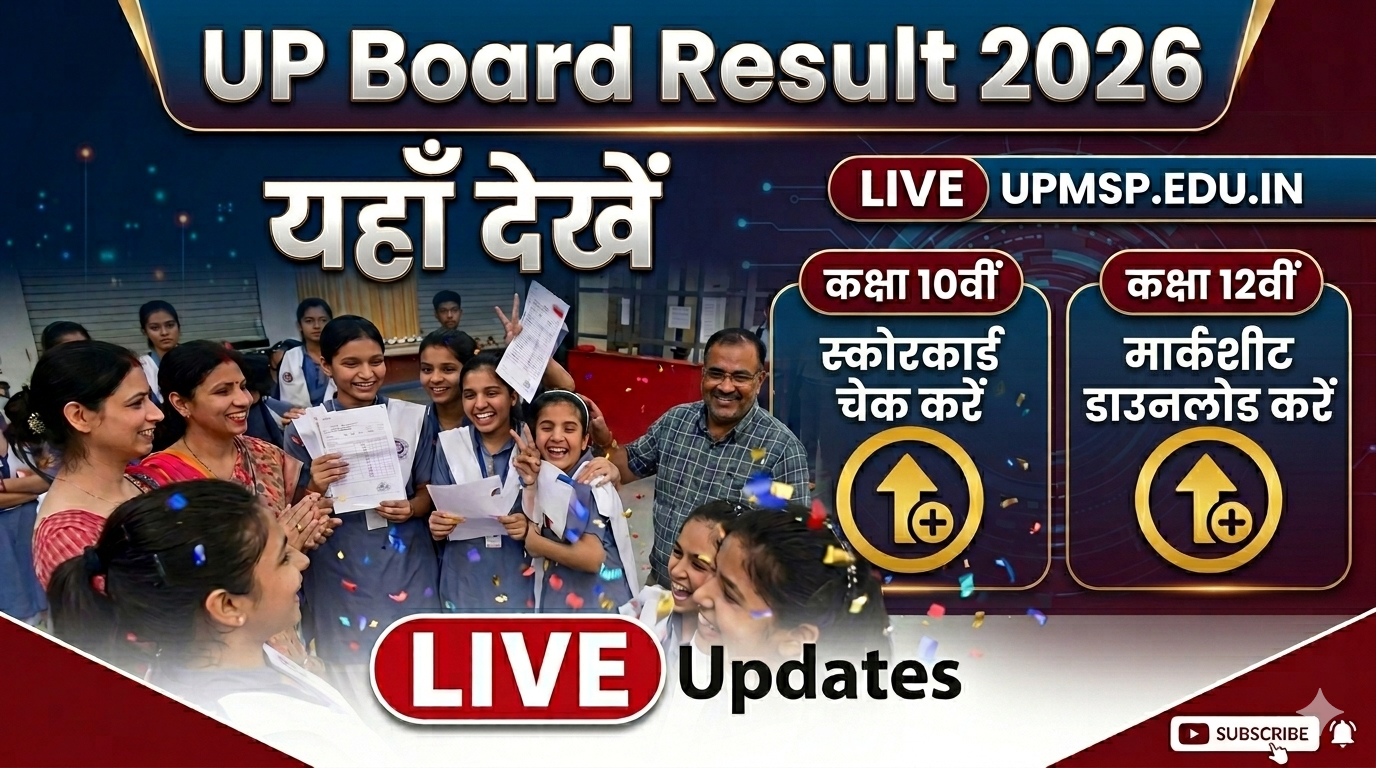 UP Board Result 2026 Live: उत्तर प्रदेश माध्यमिक शिक्षा परिषद (UPMSP) का यूपी बोर्ड 10वीं और 12वीं का रिजल्ट 2026 अब किसी भी समय जारी किया जा सकता है। राज्य के करीब 52 लाख विद्यार्थियों को इस रिजल्ट का बेसब्री से इंतजार है। बोर्ड ने लगभग 3 करोड़ उत्तर पुस्तिकाओं का मूल्यांकन पूरा कर लिया है और रिजल्ट तैयार करने का काम अंतिम चरण में पहुंच चुका है। 12वीं के इंटरनल असेसमेंट अंक भी 25 मार्च तक पोर्टल पर अपलोड हो चुके हैं। शासन की हरी झंडी मिलते ही रिजल्ट घोषित कर दिया जाएगा। पिछले साल 2025 में यूपी बोर्ड रिजल्ट 25 अप्रैल को आया था, इस बार भी 25 अप्रैल के आसपास रिजल्ट आने की पूरी संभावना है।