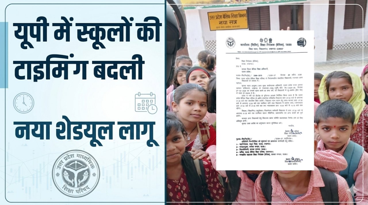 जानकारी के मुताबिक उत्तर प्रदेश बेसिक शिक्षा परिषद के तहत चलने वाले स्कूल अब सुबह 7:30 बजे से खुलेंगे और दोपहर 1:30 बजे तक चलेंगे। यह बदलाव गर्मी और हीटवेव को ध्यान में रखते हुए किया गया है ताकि बच्चे तेज धूप में स्कूल आने-जाने से बच सकें। गौरतलब है कि अप्रैल से ही तापमान तेजी से बढ़ रहा है, ऐसे में छोटे बच्चों की सेहत पर असर पड़ सकता है, इसलिए यह समय बदलना जरूरी समझा गया है।