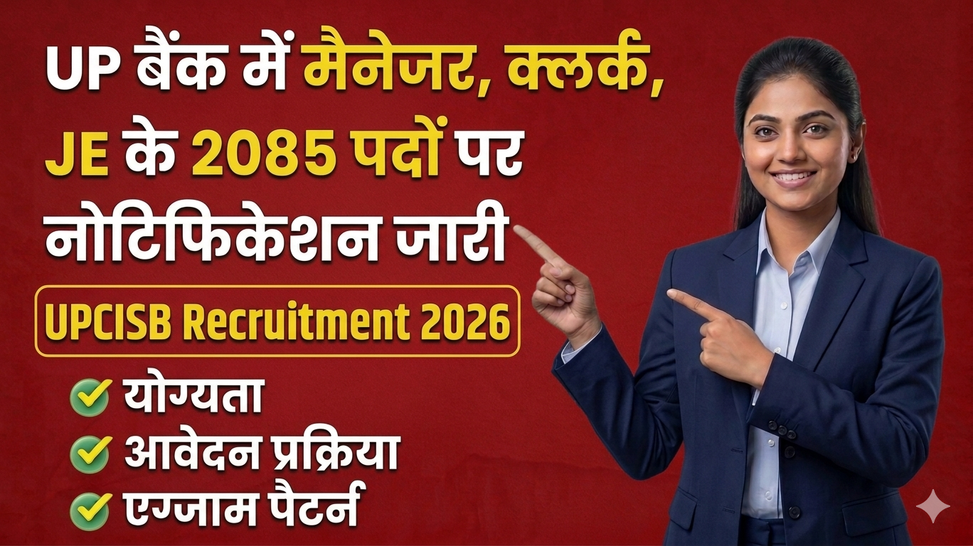UPCISB Manager Clerk JE Vacancy Notification 2026: क्या आप बैंकिंग सेक्टर में नौकरी करना चाहते हैं? यह जानकारी आपके लिए बेहद काम की है। U.P. Co-operative Institutional Service Board (UPCISB) ने 2026 के लिए नई vacancy notification जारी कर दी है, जिसमें कुल 2085 पदों पर आवेदन मांगे गए हैं। इस प्रक्रिया के तहत मैनेजर, क्लर्क, जूनियर इंजीनियर सहित कई पद शामिल हैं। ऑनलाइन आवेदन 25 अप्रैल 2026 से शुरू होकर 15 मई 2026 तक चलेगा। इच्छुक उम्मीदवार आधिकारिक वेबसाइट के माध्यम से आवेदन कर सकते हैं। वैसे देखा जाए तो यह मौका उन युवाओं के लिए खास है जो उत्तर प्रदेश में स्थिर और सम्मानजनक नौकरी पाना चाहते हैं।